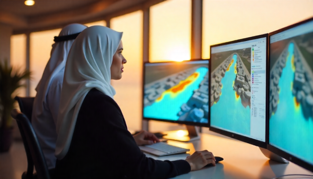 نمذجة جريان الأمطار والسيول مع حلول تصريف وشبكات حماية للبنية التحتية.